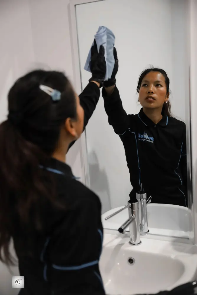 - Bedrooms/Living area (dusting/wiping mirrors, wiping sides)